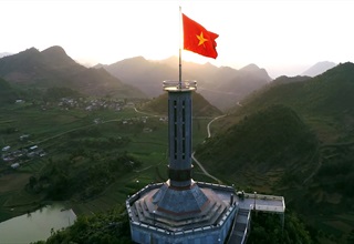 The way to Lung Cu and Meo Vac is a traverse along mountainous, rock-hewn switchbacks. It is a journey that comes into the uttermost heart of beauty and vitality, hanging in the frontier sky. Standing before the imposing milestone, the red flag with its golden star, touching the Fatherland from its very first wind, one’s heart seems to pause, encompassed by the eternal silhouette of Vietnam.