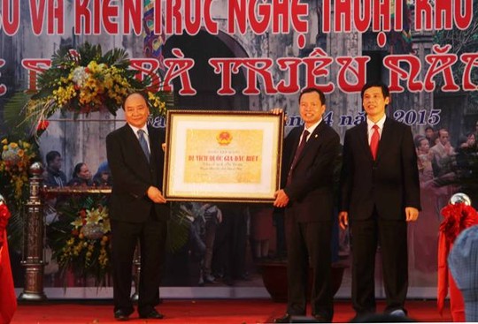 In 1979, the Ba Trieu temple and tomb in Trieu Loc commune was recognized as national cultural and historical relic site.In 1996, Phu Dien communal house was recognized as national cultural historical site.